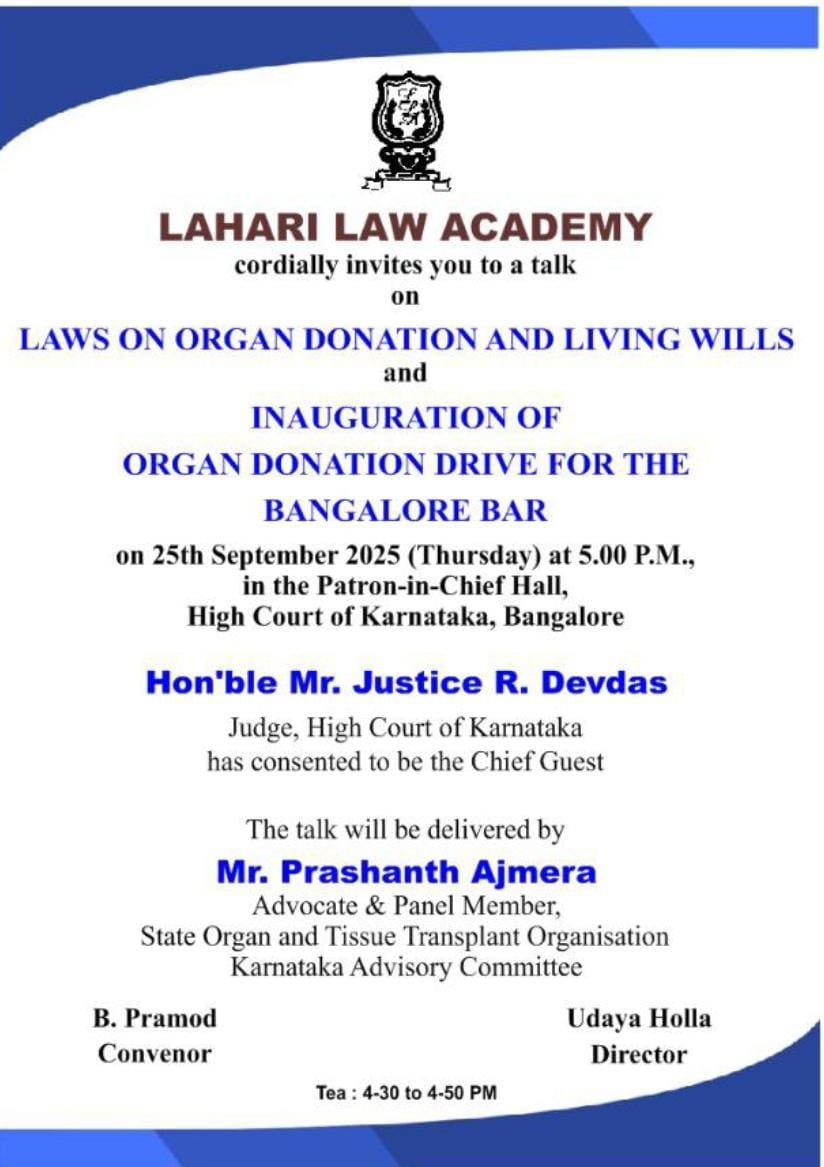 Speaker at Lahari Law Academy, Karnatak High Court, Bengaluru - September 26, 2025